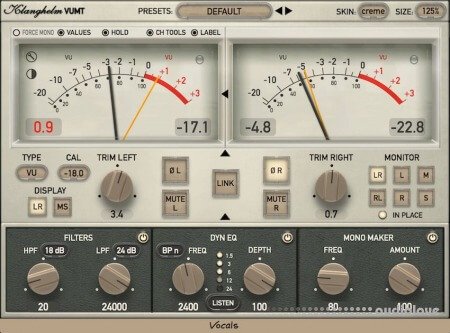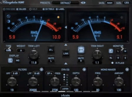 Each mode has its unique crosstalk behavior, which can be switched off or exaggerated.A unique RMS level difference metering mode makes level matching an easy task
