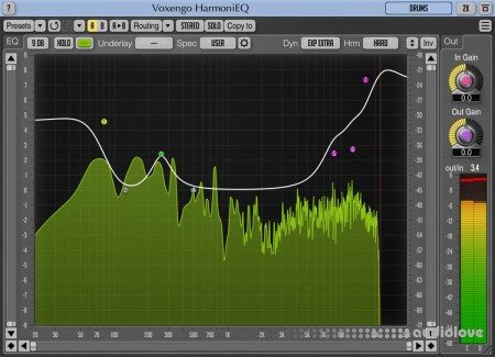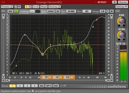 As a finishing touch, Voxformer offers you a flexible easy-handling 5-band parametric equalizer (pre/post selectable) with a real-time output stage fast Fourier transform (FFT) spectrum analyzer display